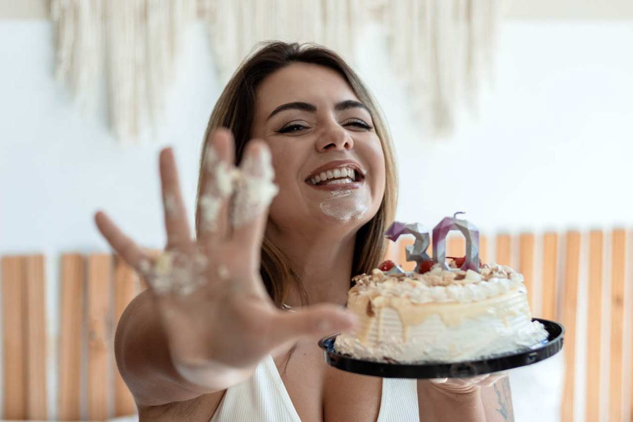 No dia do ensaio foi tudo foi incrível até os perrengues.⁣ No caminho para o estúdio os balões que ela estava levando estouraram dentro do Uber, e obviamente ela ficou um pouco chateada, mas o bolo chegou intacto e no final deu tudo certo.